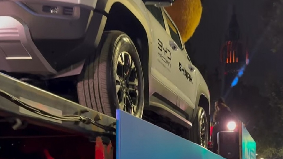 El protagonista fue un camión imponente que transportaba la nueva pick-up BYD Shark, consolidando la presencia de la marca de vehículos eléctricos e híbridos en el corazón de la Fiesta Nacional de la Vendimia.